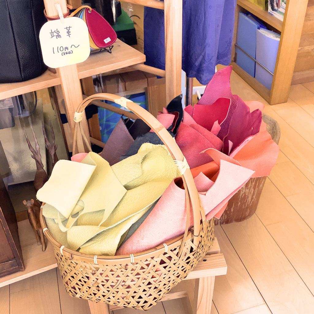 ウナボルサは工房兼店舗なので、端革(牛革)はいつでもあります。