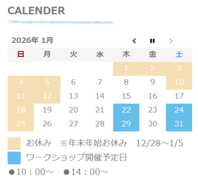 ※ワークショップ開催日も通常営業しています。ご来店ください。