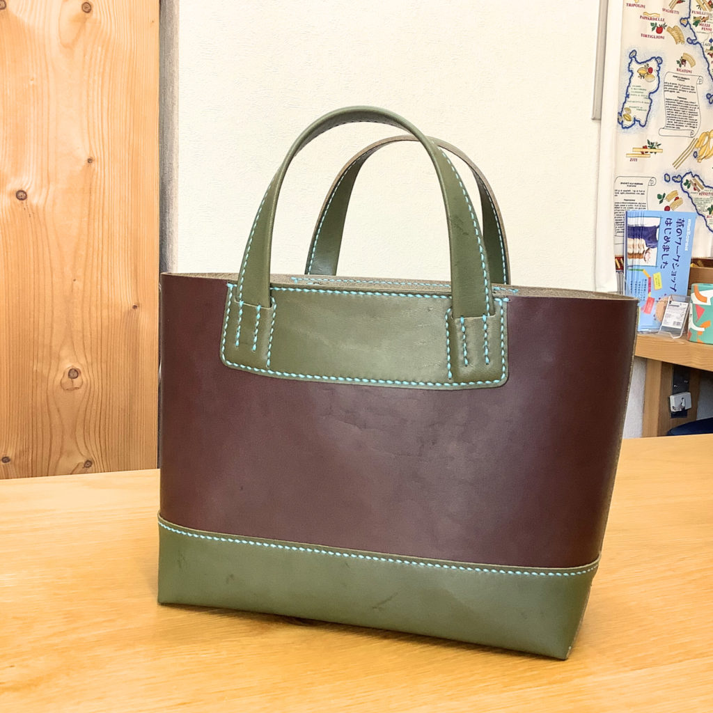 下の写真は手縫いトートバッグのサンプルです。